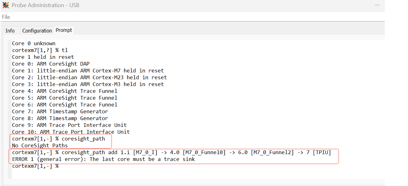 当用“coresight_path add"向开发板添加Trace数据流时,出现如图2-1的错误: