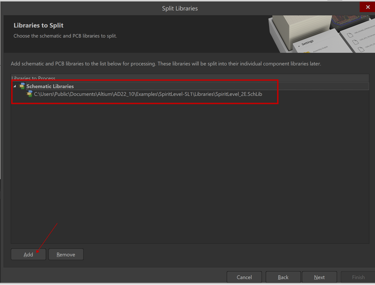 2)、点击Add添加需要拆分的原理图符号库文件,点击Next进入下一步。