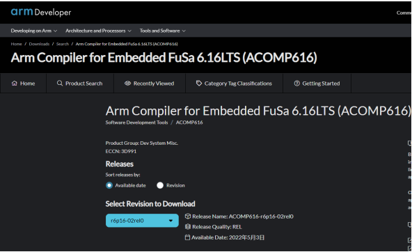 1)、软件版本:ARM DS Gold/Platinum、MDK Pro或者Arm Compiler for Embedded FuSa 6.16 LTS