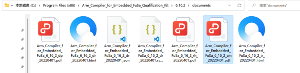 4)、默认安装完成后,在C:Program Files (x86)Arm_Compiler_for_Embedded_FuSa_Qualification_Kit6.16.2documents目录中存放着开发报告、安全手册等安全认证报告。(如图4-4)
