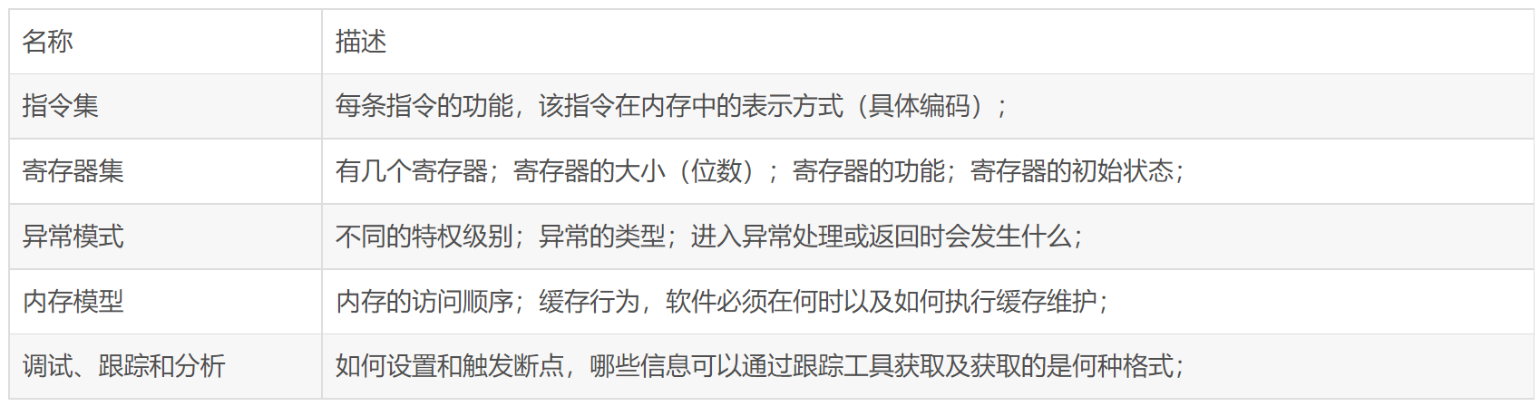 可以将架构看作是硬件和软件之间的一种规范。架构就描述了软件可以依靠硬件完成的功能。