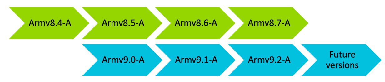 Armv9.0-A与Armv8.5-A一致,继承了Armv8.5-B的所有功能并添加了新功能。Armv9-A首次发布后,Armv8-A和Armv9-A.将一起更新。Arm将发布Armv9-A的新功能,并将继续更新和维护Armv8-A。